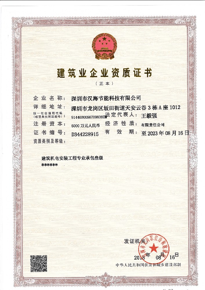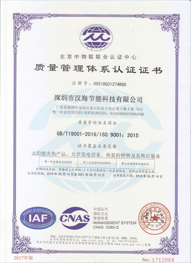 深圳市漢海節(jié)能科技有限公司成立于2011年,注冊資金6000萬元,總部設(shè)在深圳,是一家集設(shè)計、研發(fā)、施工于一體的專業(yè)化從事太陽能中央熱水工程、熱泵中央熱水工程、中央空調(diào)、光伏發(fā)電、水處理等新能源及節(jié)能環(huán)保行業(yè)的綜合服務(wù)商和工程商。在將近10年的發(fā)展歷程中,始終走在行業(yè)發(fā)展的前沿,是專業(yè)從事太陽能光熱、光伏,空氣源、太陽能熱水工程、水源熱泵,中央空調(diào),水處理產(chǎn)品的設(shè)計、安裝、售后服務(wù)為一體的高新技術(shù)企業(yè);是專業(yè)提供太陽能中央熱水工程、熱泵中央熱水工程、中央空調(diào)工程、光伏發(fā)電工程、水處理工程、太陽能熱水工程等全面解決方案的供應(yīng)商和工程商,產(chǎn)品涵蓋太陽能集熱器、空氣源熱泵、水源熱泵、中央空調(diào)、光伏組件、太陽能熱水工程等,是新能源的倡導(dǎo)者和推動者。公司成立以來,始終秉承“誠信、責(zé)任、專業(yè)、高效”的服務(wù)宗旨,以市場需求為導(dǎo)向,以為客戶創(chuàng)造價值為己任的精神,不斷開拓創(chuàng)新,通過多年的快速發(fā)展,公司綜合實力躍居行業(yè)前列。漢海擁有一支經(jīng)驗豐富、善打硬仗的專業(yè)高效團隊;擁有一批專業(yè)的高級工程師、中級工程師、二級建造師、造價工程師、電氣設(shè)計師、給排水設(shè)計師;擁有一批機電、安防、水、電等專業(yè)技術(shù)施工和售后人員,配備先進(jìn)齊全,實力雄厚,技術(shù)領(lǐng)先。漢海以質(zhì)量樹信譽、以工藝立標(biāo)桿、以管理創(chuàng)效益、以服務(wù)得人心,工藝水平在業(yè)界獨樹一幟,成為行業(yè)模仿的典范。漢海承建的機電工程(設(shè)計、施工)涉及星級酒店、賓館、高檔辦公樓、花園別墅、住宅小區(qū)、學(xué)校、水療中心、工廠等各種類型的工程,工程項目遍布全國各地。漢海將致力于成為全球信賴的新能源綜合服務(wù)商,為客戶提供新能源的全方位解決方案。未來,漢海將依托國家政策,積極開拓粵港澳大灣區(qū)、中國特色社會主義先行示范區(qū)市場及“一帶一路”沿線國際市場,推動新能源的新輝煌。